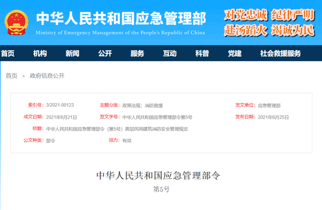《高層民用建筑消防安全管理規定》已經2020年12月28日應急管理部第39次部務會議審議通過,現予公布,自2021年8月1日起施行。