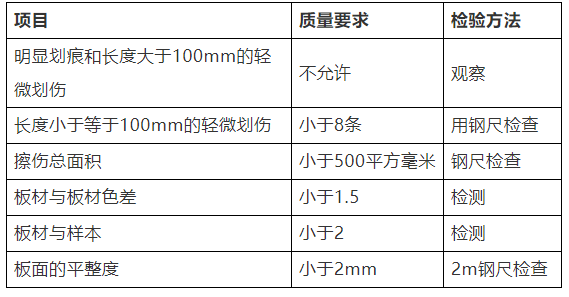 以下是每平方米保溫裝飾板的表面質量和檢驗方法應符合下表