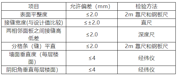 保溫裝飾板系統安裝允許偏差及檢驗方法見下表: