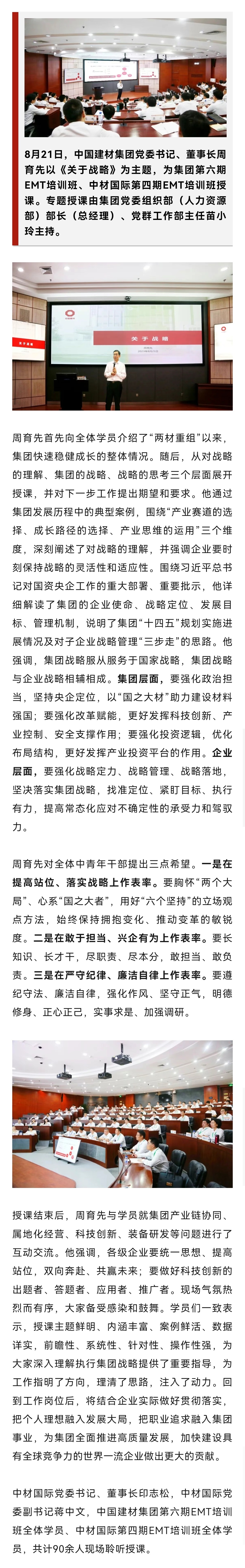周育先為中國建材集團(tuán)第六期和中材國際第四期EMT培訓(xùn)班授課